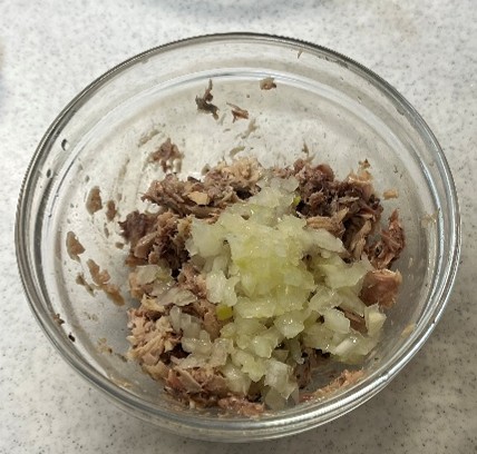 ①鯖の水煮は水けを切ってボウルに入れ、黒胡椒を多めに振り、身を潰してペースト状にする。